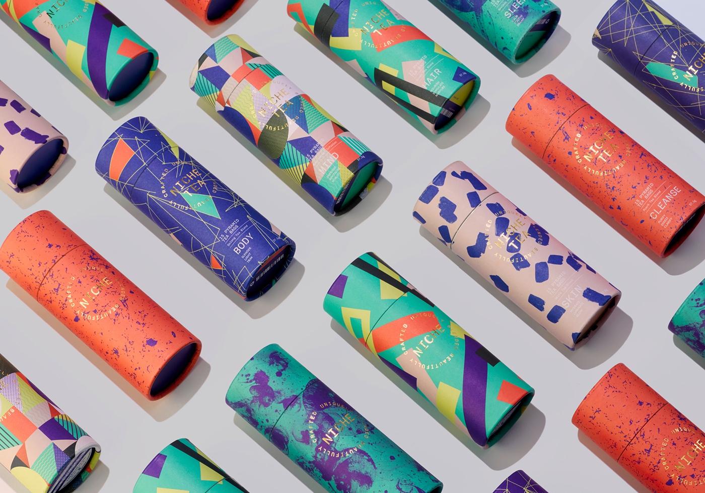 這個品牌的茶共有六個類型,不同于其他茶葉素雅的包裝,倫敦草本茶在包裝設(shè)計上分別采用對比色和同類色等鮮明的色彩,目的是營造出頭發(fā)、皮膚、睡眠、消化等癥狀改善后的青春活力的氣氛。整體的包裝設(shè)計充分利用了點(diǎn)線面三大元素,增添了產(chǎn)品的現(xiàn)代感。除此之外,產(chǎn)品包裝上還采用了茶的碎渣以及顯微鏡下茶的營養(yǎng)元素的圖案進(jìn)行設(shè)計,迎合了天然健康的品牌文化。