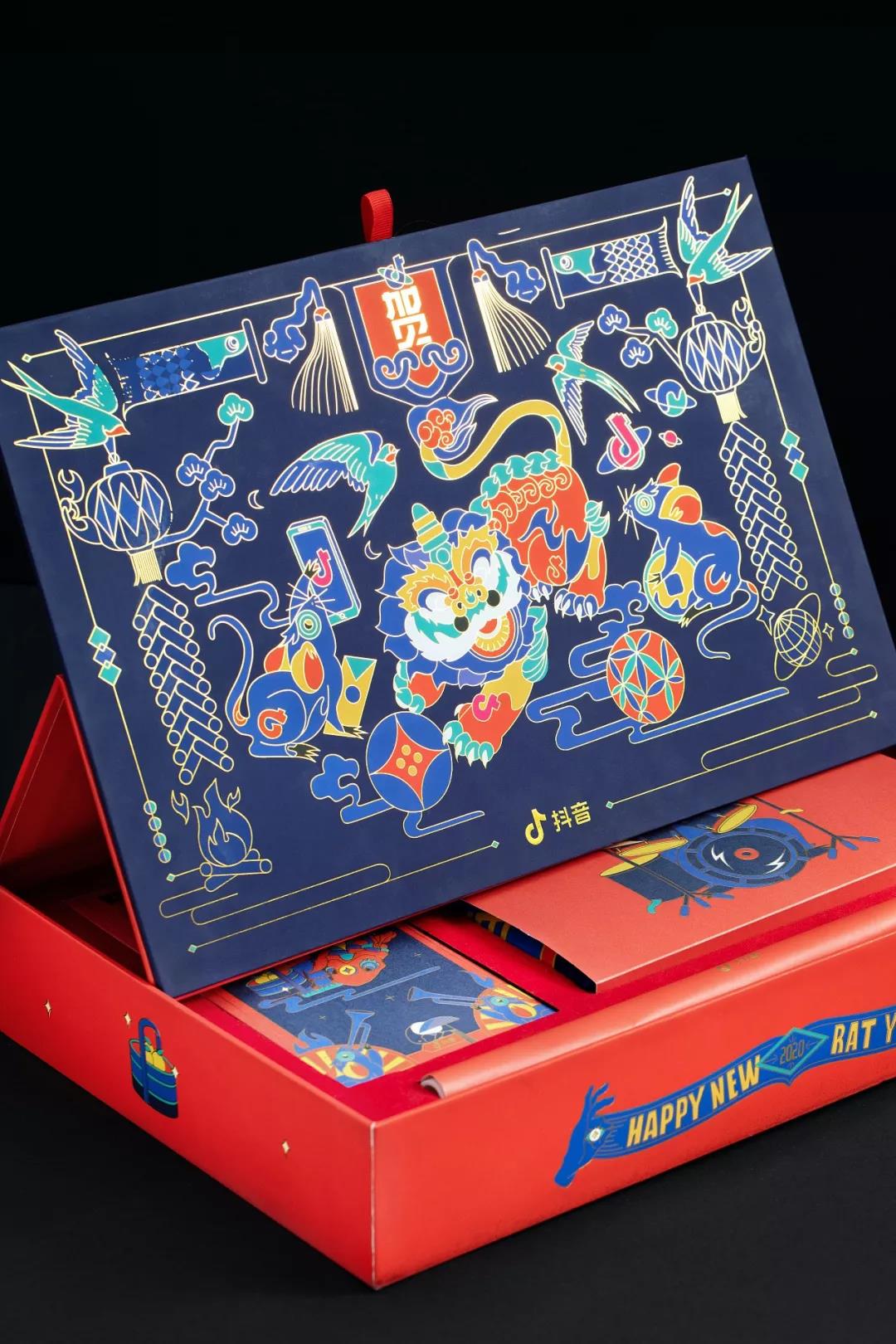 抖音新年禮盒玩了一把諧音梗,禮盒主題叫做“樂不思鼠”,包裝設計硬核搖滾,配合中國傳統(tǒng)元素,讓你開啟潮酷鼠年。