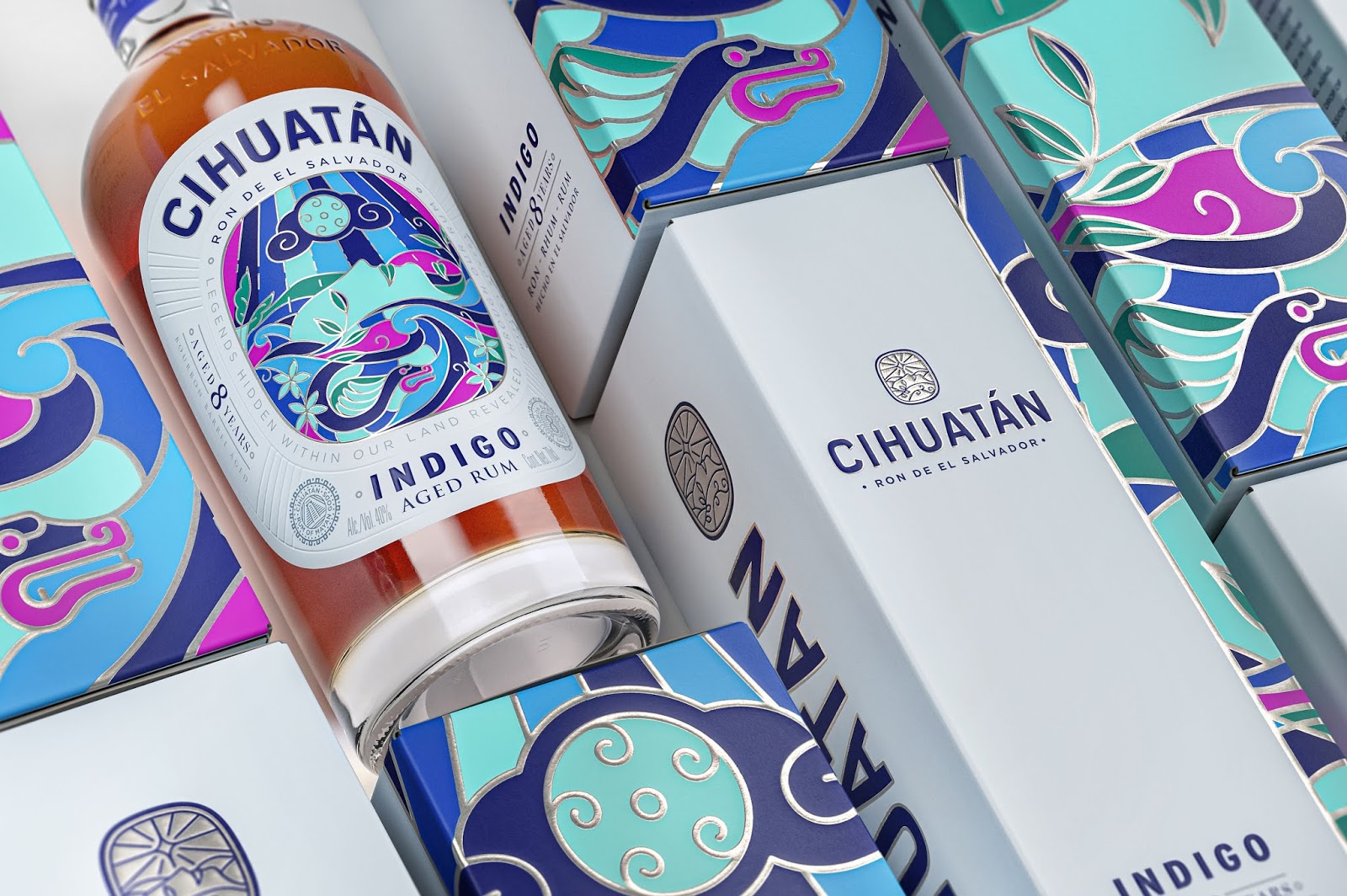 Cihuatan是一個來自薩爾瓦多的特制朗姆酒品牌。在納瓦特方言中,“Cihuatán”的意思是“女神熟睡的土地”。通過插圖刻畫鮮花綻放過程中的力量和美麗,通過女神睡顏表達女神的繁衍生息的力量。在工藝上“女神”的輪廓運用燙銀和凸紋的技術,讓畫面有了些許立體感,增強畫面層次。色彩上,采用當地特有的暖色和冷色搭配方式,讓文化的符號更加深入人心。