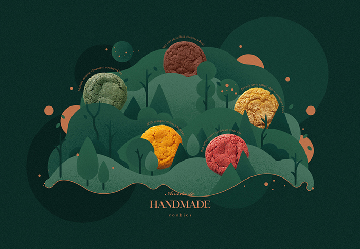Anastasia納斯塔是一家專注高端手工曲奇的甜品品牌,創(chuàng)始人是一位美麗優(yōu)雅的女性,她希望把天然優(yōu)質(zhì)的產(chǎn)品理念融入品牌視覺,讓購買與品嘗它的顧客能感受到產(chǎn)品的心意與生活的詩意。用味蕾喚醒森林的手工曲奇,赤橙黃綠棕,食材的天然色彩打破視覺邊界,變身可愛的森林精靈,讓天然的美味伴著森林的微風,拂過每一個陽光耀眼的日子。創(chuàng)新設計的隨身小食盒,讓你將有趣的森林精靈盡收囊中。