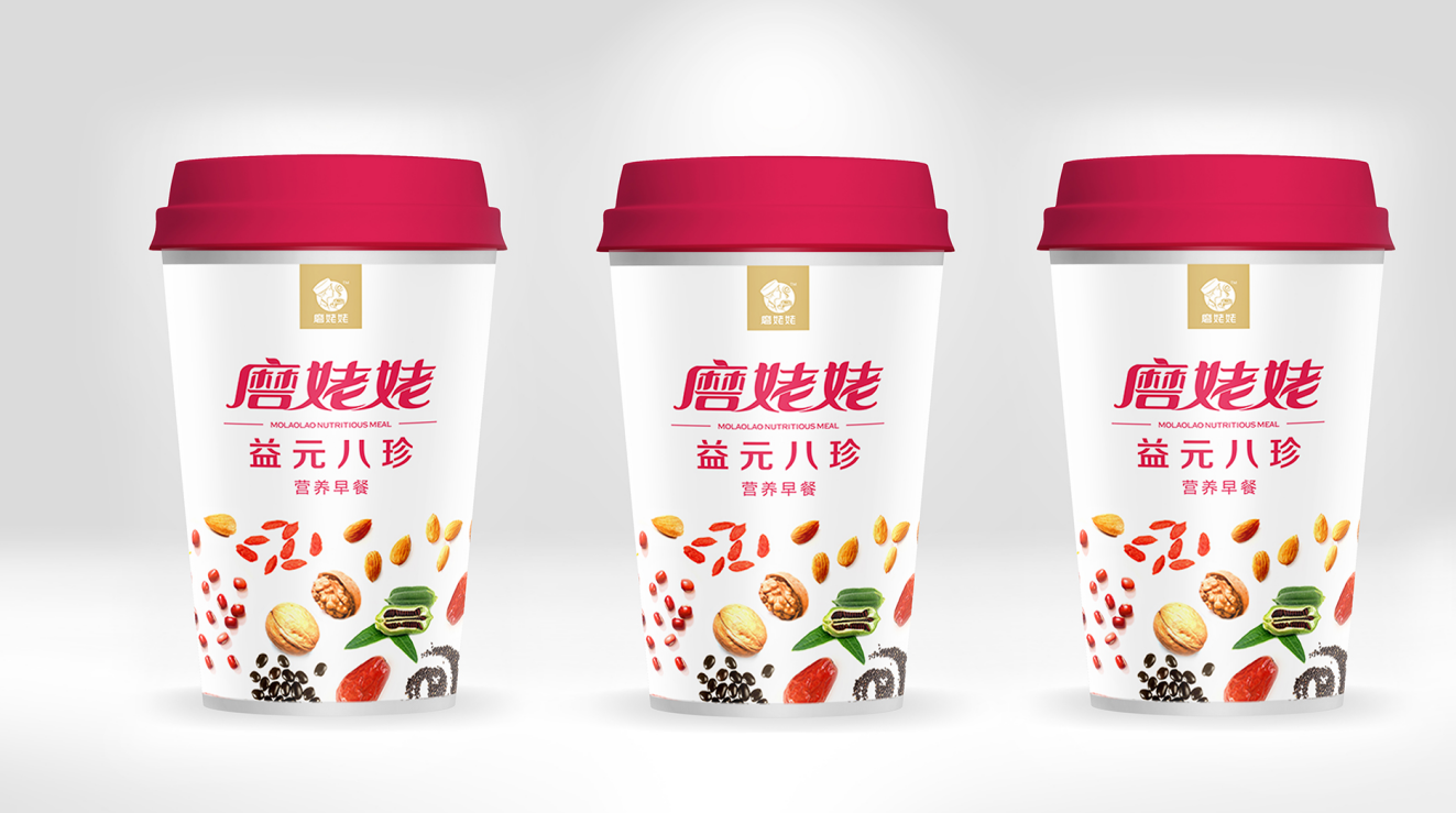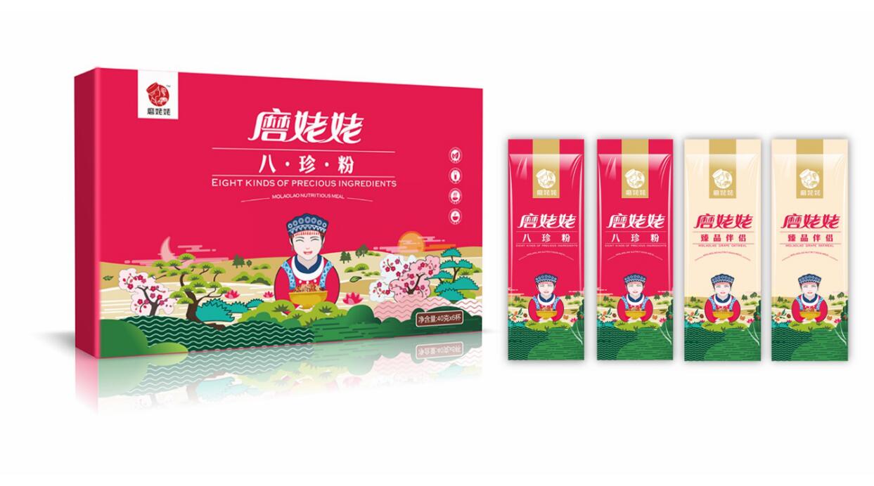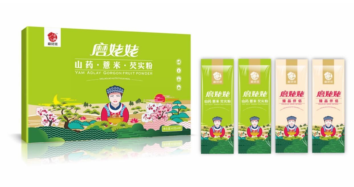 當產品在市場上得到消費者的認同后,一個偶然的機會,信立浩達與磨姥姥達成合作,為磨姥姥提供品牌形象設計、產品包裝設計,用文創品牌的思維,塑造了磨姥姥新的品牌形象,45天內,我們從武漢到長沙,從長沙到武漢,經過了大量的市場調研、腦力風暴,挖掘了中國傳統食文化、養生文化,設計出了磨姥姥的品牌主畫面,品牌標志、系列的產品包裝設計,還有招商網站、招商畫冊、宣傳廣告、海報等:益元八珍營養早餐, 一天一杯磨姥姥,健康快樂一整天!山藥薏米芡實,我要想吃就吃不長肉!紅豆薏米杏仁,我要貌美如花人人夸!核桃芝麻黑豆,養發烏發。武漢農產品包裝設計公司信立浩達用品牌設計的力量協助磨姥姥在全國招商成功!